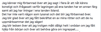 Om sjuka gör som denna administratör uppmanar dem att göra i sitt förtal av UMS lär de inte komma åt den inflammation vi alltid har i botten. Lite senare i sin text kallar hon UMS:s-metoder för ”trams” och hela texten andas information som går ut på att jag är nån form av bedragare.