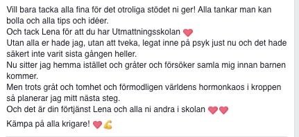 Tack för att du har skapat Utmattningsskolan med massor att ta till när man läker sig själv. Dessutom är det fantastiskt att du håller de priser du gör. Det gör det möjligt för alla som vill att vara med.