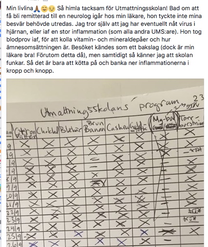 Jag heter NN och min utmattningshistoria är lång. Jag är strax under 30 år och har aldrig riktigt orkat någonting. Har haft ont i lederna i hela mitt liv, huvudvärk, bihåleproblem och återkommande halsinfektioner, varit deprimerad/nedstämd, varit ”seg” i huvudet och tappat ord och så har jag kraschat två gånger. En av de två gångerna med antidepp-medicin som resultat och det blev givetvis inte bättre (vilket du förklarar för oss i skolan). Den senaste en totalkrasch som kom att göra mig sängliggande ”på riktigt”. Jag har mer eller mindre varit sjuk hela mitt liv, där mögel och borrelia är huvudorsakerna. Ska efter påsk påbörja den ”stora” avgiftningen för mina specifika förgiftningsrötter. Jag är så tacksam!