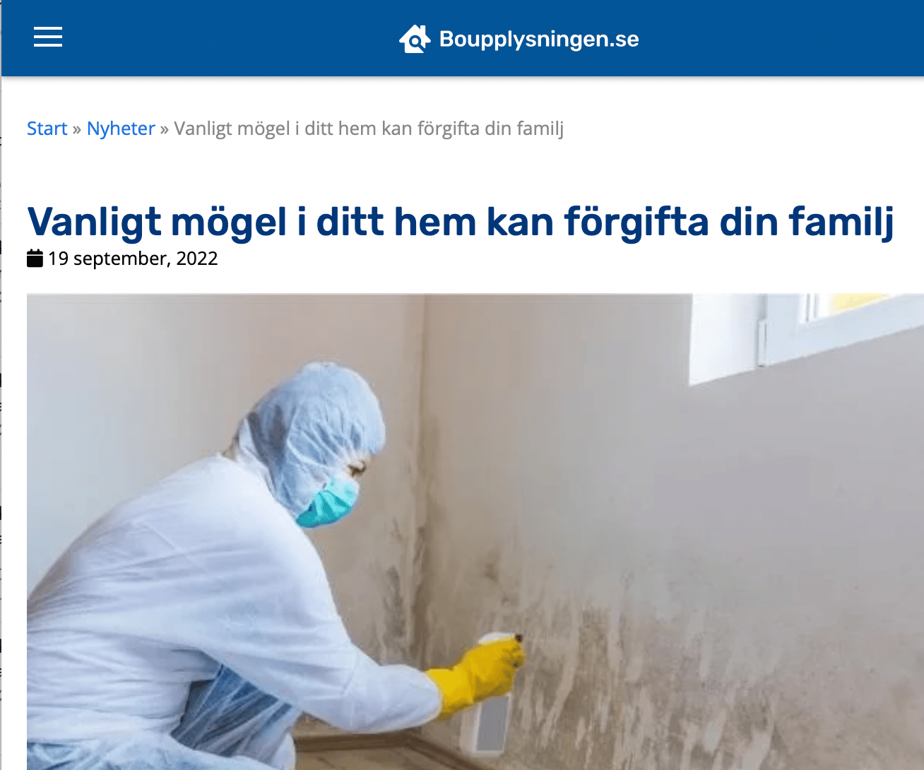 Nu går vi alltså in i vårt åttonde år, och det verkar vara rätt okänt i Sverige att inte minst mögel är en stor rotorsak, fortfarande.