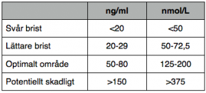 När vi vistas utomhus på sommaren så bygger vi upp ett lager av D-vitamin som kroppen sedan förbrukar under den mörka delen av året. Kroppen lagrar sedan D-vitamin i cirka tre månader (personlig variation förekommer) så det är inte förrän tre månader efter de soliga månaderna som vi känner av låga D-vitaminnivåer. Läs mer