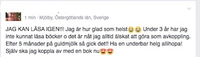 Men det som till sist verkligen kom att göra en stor skillnad i mitt liv och som var början på att jag skulle få mitt liv tillbaka var när jag hittade till Utmattningsskolan som Lena Holfve startat. Så till dig som kämpar mitt i en utmattning just nu kan jag rekommendera att söka dig dit. Det kommer att hjälpa dig.
