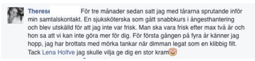 “Härligt att höra att det finns hjälp som funkar.”