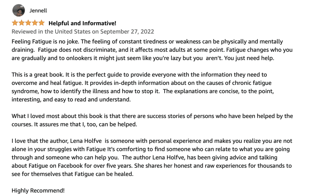 Finally, Free From Fatigue! is a tool meant to help people heal fatigue and especially chronic fatigue. It takes the reader on a journey from recognizing the fear of the experience, knowing the condition can be cured, the causes and consequences, the signs and symptoms, and also, most importantly, how to address them. In addition, it will consider the importance of sleep, how to work with brain fog, and a lot of other topics. The guide is meant to help anyone struggling with fatigue and uses a scientific basis to explain how it works and how anyone can cure their body and their mind in a natural way.