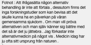Få svenskar vet vilken mat som gäller eller att all forskning visar att stora odlingar av hampaplantan ”äter” upp radioaktivitet eller att man har hittat en ny svamp i Tjernobyl som också ”äter” radioaktivitet. Många vet att ”äta jod är bra” men få vet att zink bör finnas i normalnivå i kroppen först.